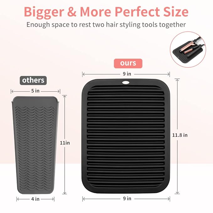 - Larger Size Larger Space - The silicone curling iron sleeve is designed as 11.8*9.1*0.24 inches, weight 0.33lb. This curling iron mat heat resistant for counter can place multiple hair styling tools at the same time. This item only includes a heat resistant mat.