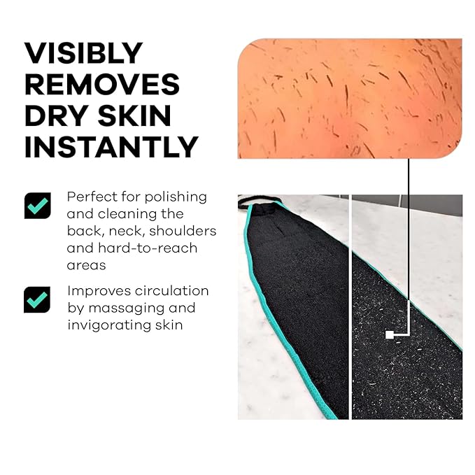 - VISIBLY REMOVES DEAD SKIN: Get ready for a divine body scrub! Our reusable body and back scrubber are made of a unique, silicone-free, Viscose blended material specially designed to exfoliate your body. Removes dead skin layers, leaving behind smooth, radiant skin—no brush, sponge, or loofah required. Our reusable exfoliator is cost-effective because we combined these into one luxury scrubber.