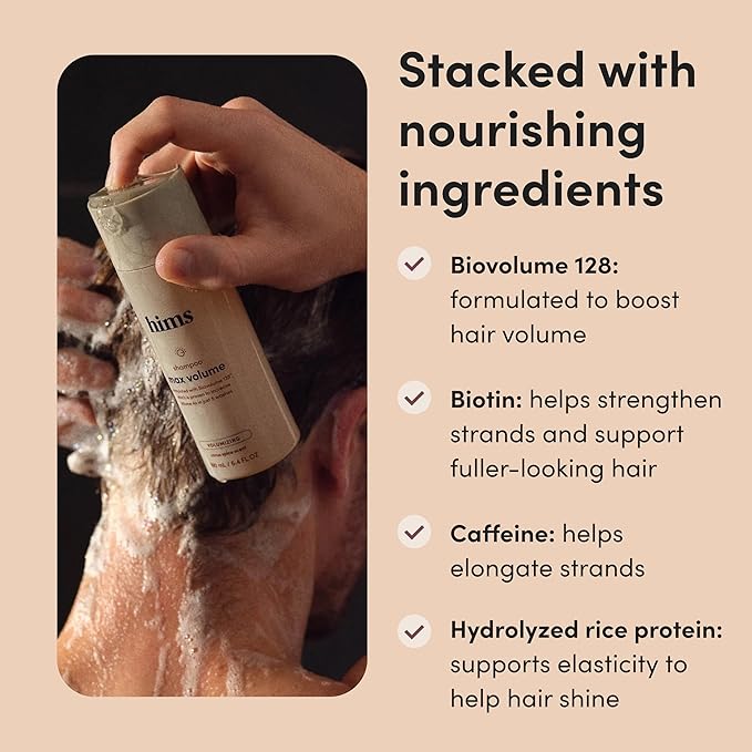 hims Max Volume Shampoo, 2 Pack - Volumizing Natural Shampoo for Men with Biotin - Adds Volume, Shine & Bounce - Citrus Spice - 2 x 6.4 fl oz