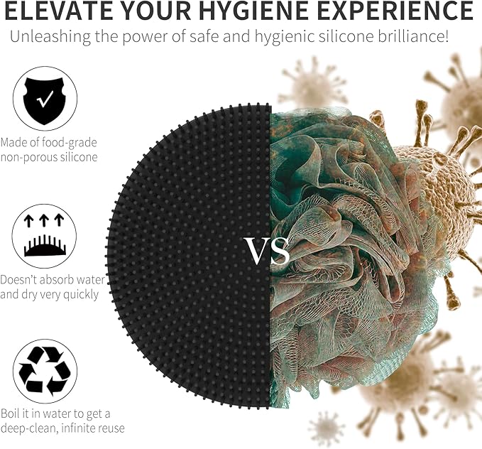 - MORE HYGIENIC OPTION: Unlike loofah, wash cloth and exfoliating sponge, BEAUTAIL body scrubber is made from non-porous, self-cleaning silicone, which doesn't absorb water, dries quickly, so it isnโt as susceptible to building up with unpleasant substances.