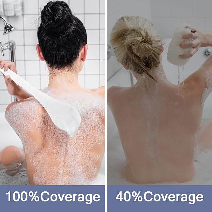 - 🛁【Ergonomic Handle】Our back brush long handle for shower comes with a 15.4 " long ergonomic handle, especially designed for easy back scrubbing, which makes you enjoy your bathing spa everyday.
