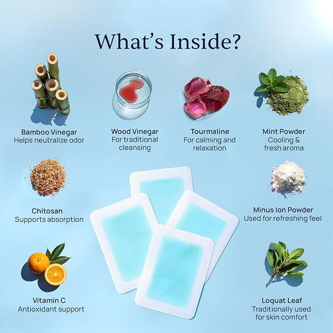 - Natural, Safe, and Side-Effect-Free Ingredients: Trustworthy ingredients comprise our natural cleansing foot pads. Xitox's herbal formula has no adulterated ingredients and includes bamboo vinegar, loquat leaf, and more to help improve your sense of well-being.