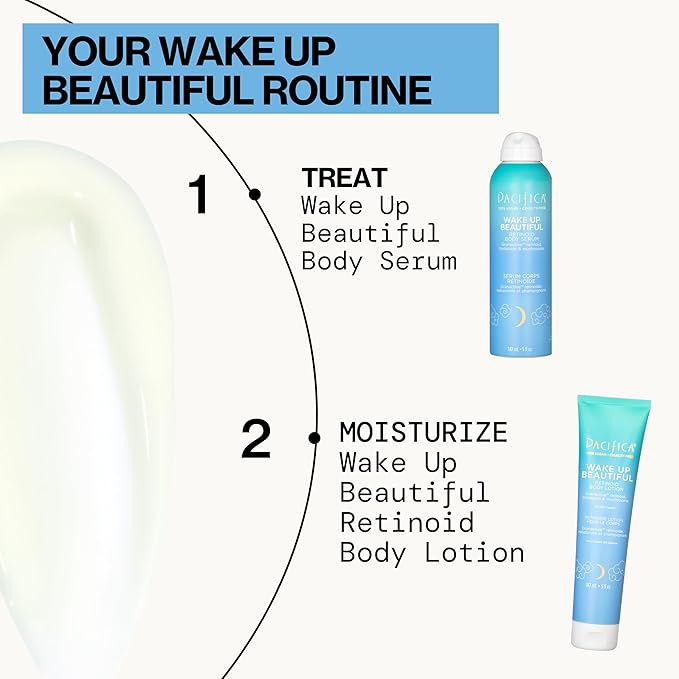 Pacifica Wake Up Beautiful Body Lotion & Serum Set of 2 – Overnight Body Treatment w/Granactive Retinoid, Mushroom & Melatonin, Hydrating Moisturizer Duo for Plumper Skin, Vegan & Cruelty-Free Clean