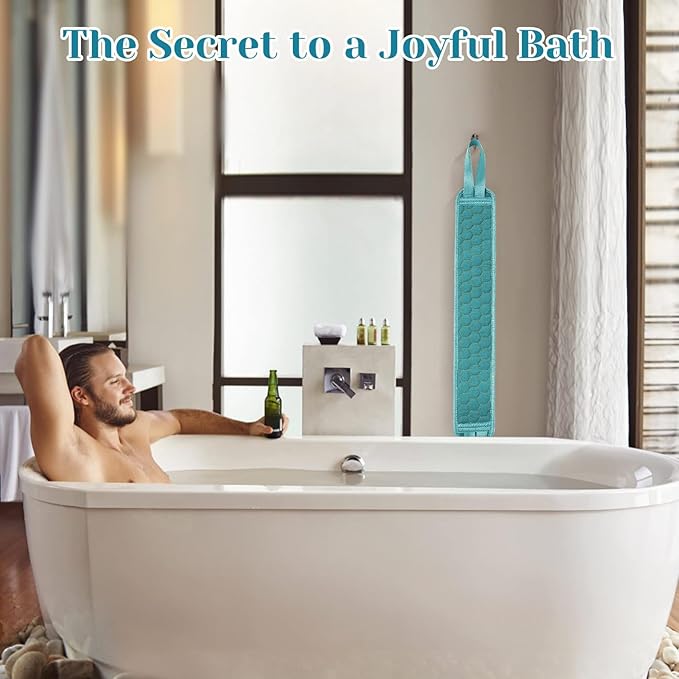 - 【Exfoliating Shower Brush】: With 40 inches/100cm long, 3.9 inches/10cm width, our extra long silicone body scrubber is designed to replace traditional washing towel and loofah,which can make bathing more effortless and more suitable for people with larger body.