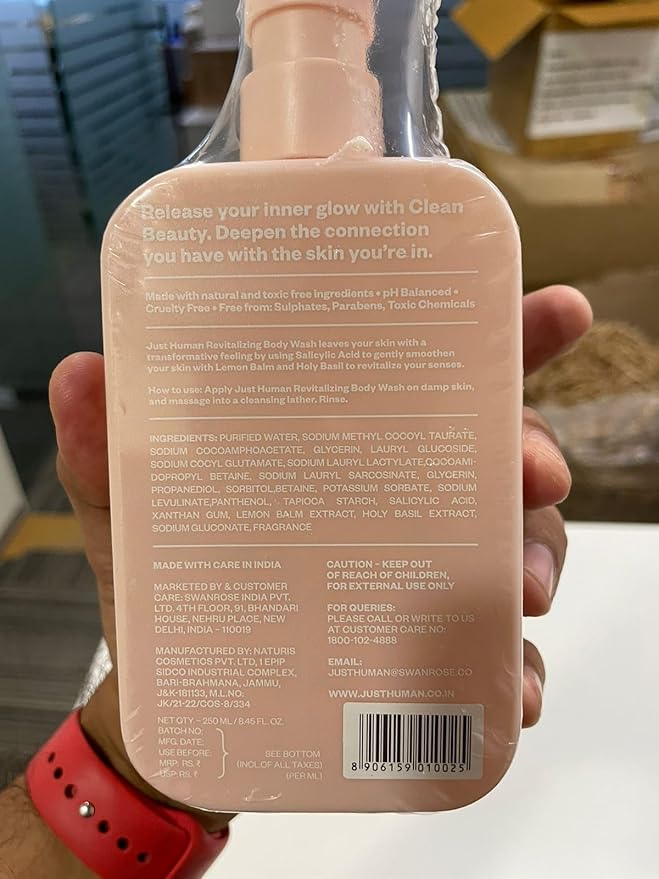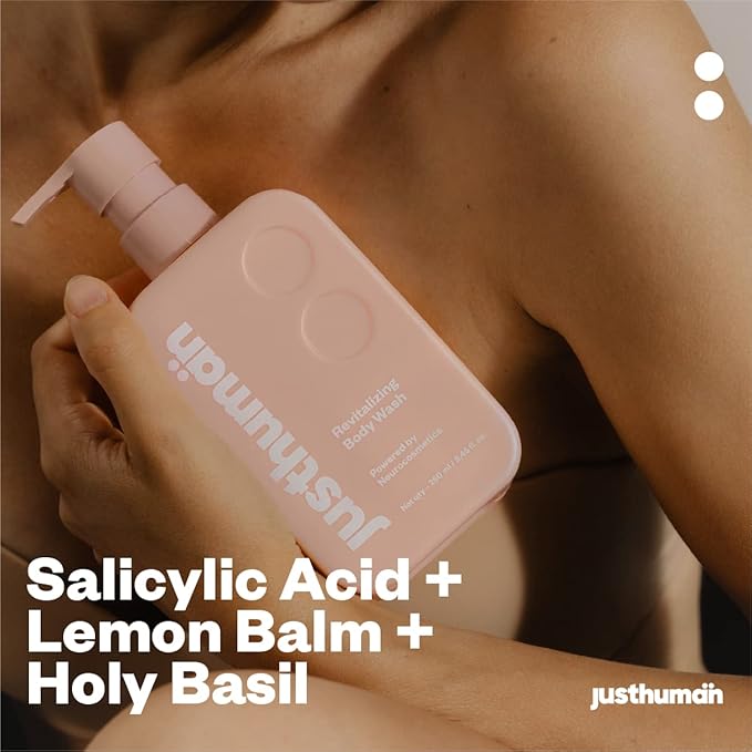 - CLEAN BEAUTY INGREDIENTS : Just Human Revitalizing Body Wash leaves your skin with a transformative feeling by using 0.1% w/w Salicylic Acid to gently smoothen your skin with Lemon Balm and Holy Basil to revitalize your senses. It helps to exfoliate the skin and clear clogged pores. Also provides hydration to the body