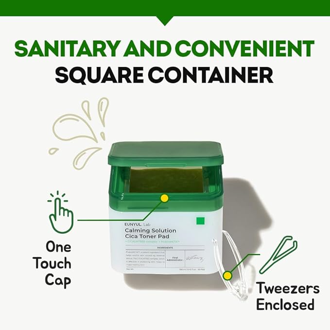 EUNYUL Lab Calming Solution CICA Toner Pad [6.43 fl. Oz. / 190ml] 60 Pads Face Toner Pads, Korean Skincare with Vegan Certificated Cotton Pad