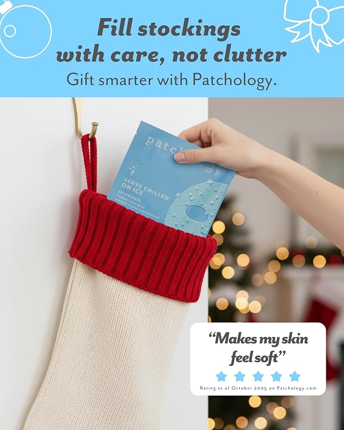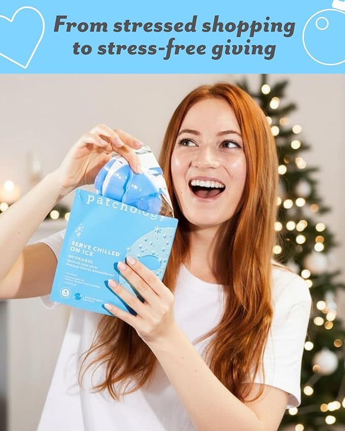 Patchology Iced Cooling Hydrogrel Face Mask Sheet with Peptides, Cloudberry Oil & Bakuchiol, Facial Sheet Mask for Soothing, Puffiness & Firming Skin - Christmas Gifts & Stocking Stuffers (1 Count)