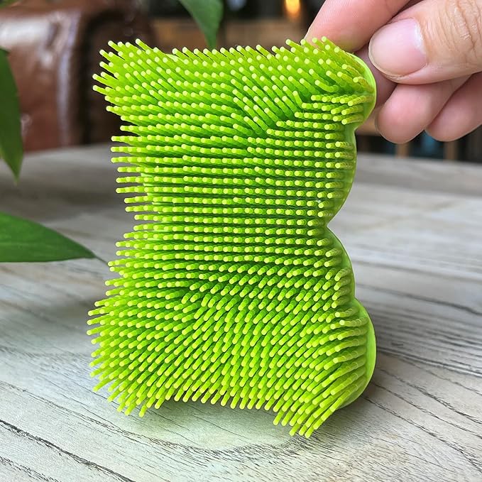 Premium Sensory Brush for Kids or Autism,Soft Silicone Body Scrubber,2 in 1 Sensory Room Occupational Therapy Fidget Brushes,Silicone Loofah,Pets Shower Brushes Bath Brush Shampoo Brush(Bear-Green)
