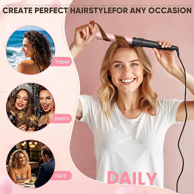 - An Exceptional Choice as a Gift : The 5 in 1 Curling Iron Set, accompanied by an enchanting storage bag, clip, and glove, empowers you to employ it at home and create an array of professional hairstyles, flaunting your extraordinary personality