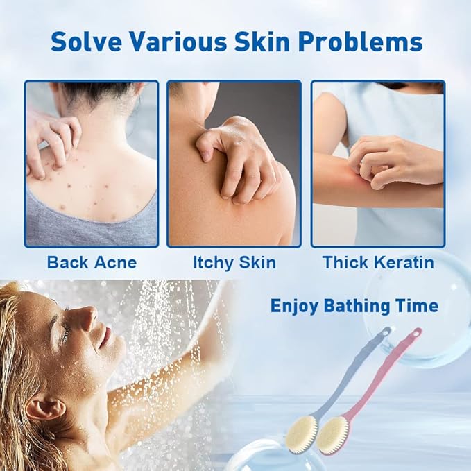 - 🚿Dual Sided - Both sides of the body brush can be used, one side with soft bristle brush and the other side with massage bumps, efficiently cleanses your body while providing you with the comfort of a massage.