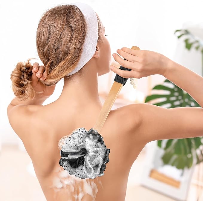 - 【Fast and Easy Lathering】The bath ball of the back scrubber for shower for men is made of soft mesh, which helps to lather quickly. Use with your favorite body cleanser, body wash or scrub for a deep clean to remove dirt.