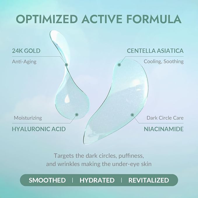 - Bye Bye Dark Circles: Bid farewell to those pesky dark circles! Our eye gel patch contains Vitamin K3, known for its excellent brightening effect and relief from under-eye bags. Experience the calming benefits of Cicaluronic Complex, tea tree, calendula, and aloe extract as they reduce redness and soothe your eye area