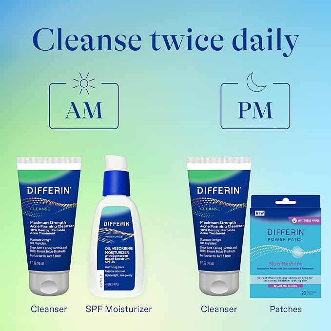 Differin Acne Face Wash with 10% Benzoyl Peroxide, Maximum Strength OTC Acne Foaming Cleanser, Fast Acting Acne Treatment for Face and Body, 5 oz.