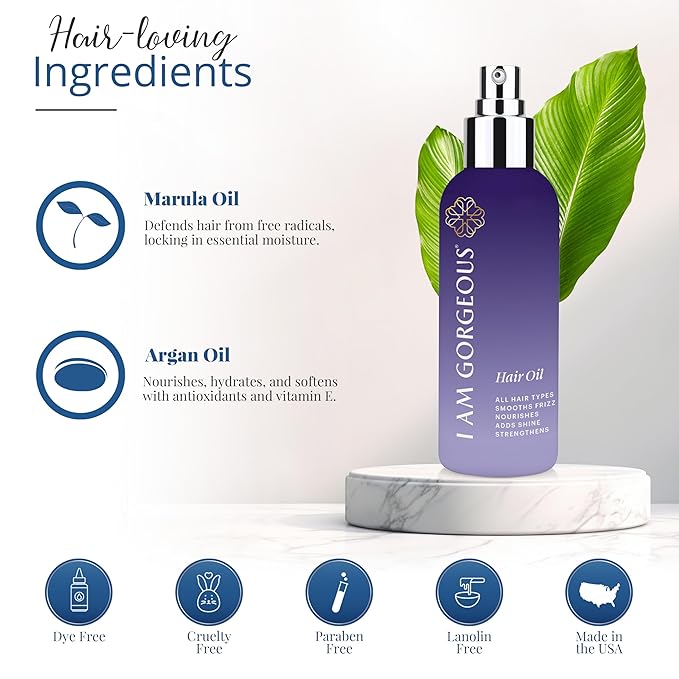 I am gorgeous Hair Oil - Frizzy Hair Solution with Nutrient-Rich Marula & Argan Oil for Damaged, Curly Hair - Adds Lightweight Hydrating Shine