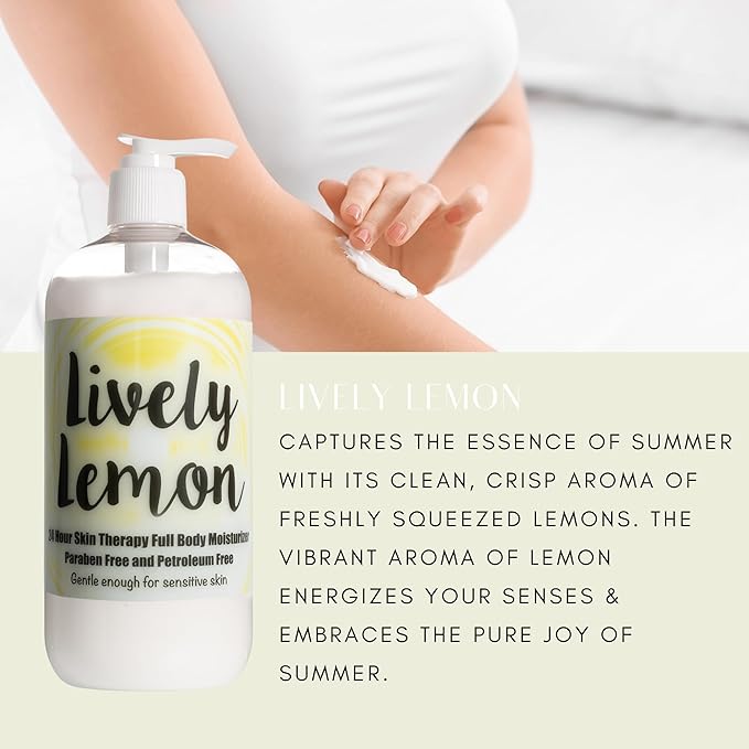 Lively Lemon Body Lotion – 24 Hour Moisturizer by The Lotion Company | Handcrafted in USA | Paraben-Free, Lightweight Skincare for Dry, Sensitive Skin | Small-Batch Father-Daughter Brand | 16 oz