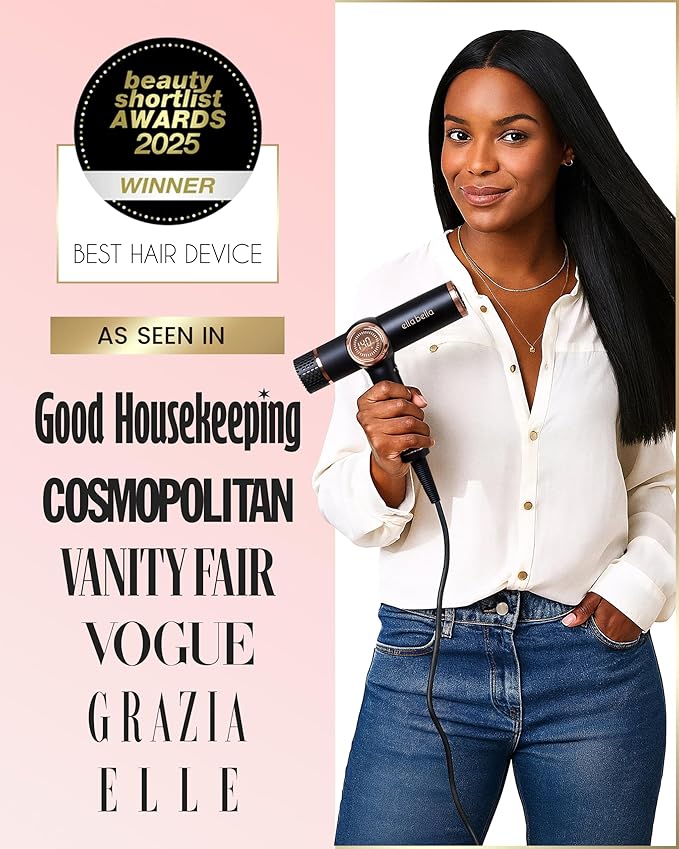- Versatile Beauty for ALL HAIR TYPES: No matter your hair type or texture, the Ella Bella Hair Dryer is your ultimate companion. With MULTIPLE HEAT SETTINGS to choose from and INTELLIGENT HEAT CONTROL, you can customize your drying experience to suit your specific hair type