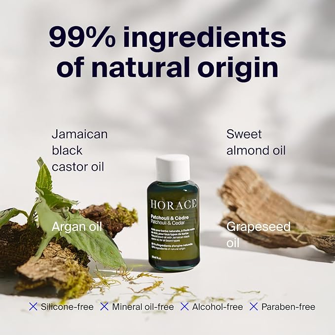 HORACE Patchouli & Cedar Beard Oil for Men - Conditioner with Argan Oil - Gentle Beard Care for All Skin Types - Woody, Aromatic Scent, 30 ml