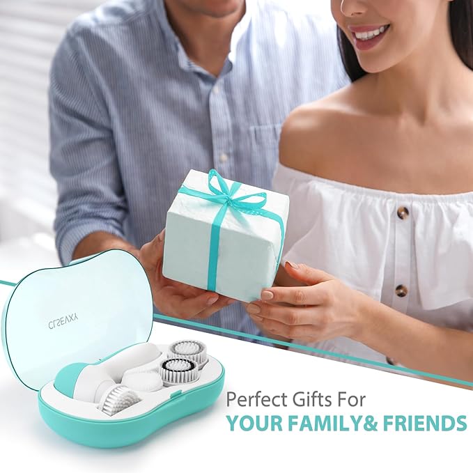 Rechargeable Facial Cleansing Spin Brush Set with 4 Exfoliating Brush Heads - Complete Face Spa System by CLSEVXY - Waterproof Face Scrubber for Gentle Exfoliation and Deep Scrubbing