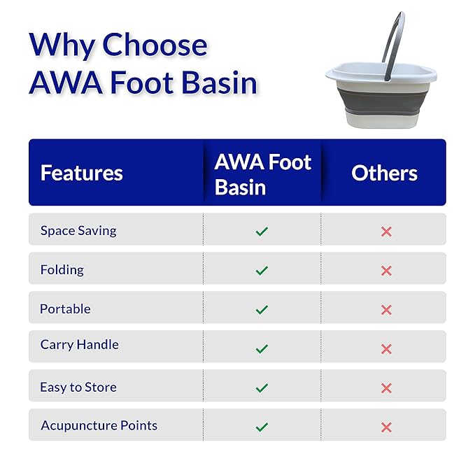 - Collapsible foot soaking tub for relaxation: This foldable tub provides a spa-style soak at home. Use warm water and salts to relax sore feet after a long day. Designed to support comfortable soaking feet experiences without bulky equipment.