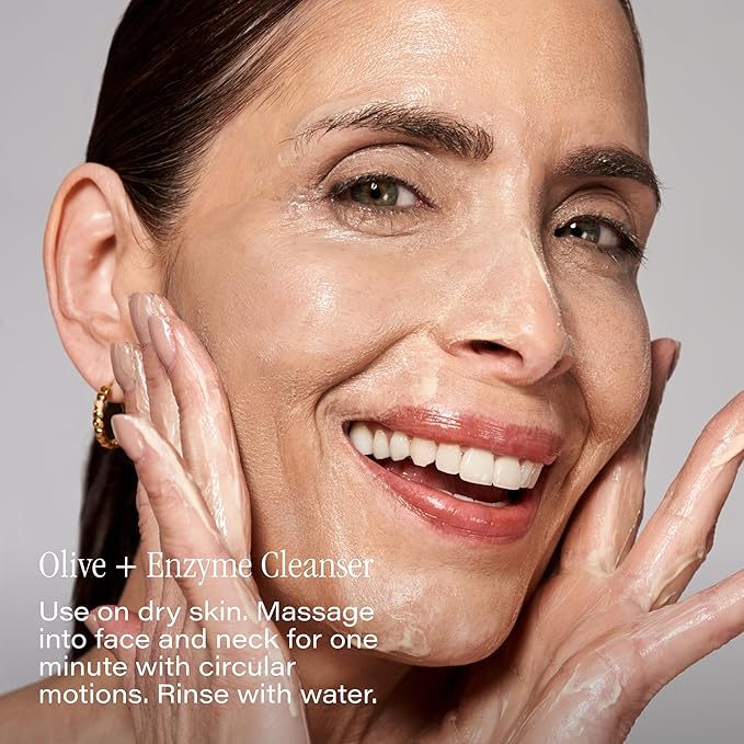 - Evening Renewal — This rich cleansing crème features fruit enzymes to gently remove dull surface cells, while a fermented antioxidant complex supports natural skin renewal.