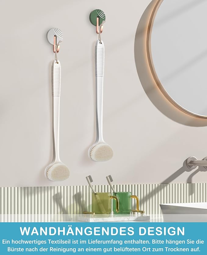 - Convenient Storage & Stylish Design: Equipped with hooks and a soft cotton lanyard, this back brush can be easily hung on the wall for convenient storage. To ensure long-lasting use, let it dry in a well-ventilated area, avoiding direct sunlight and heat. With its stylish, macaron-inspired color options, this back scrubber will add a pop of color and serve as a distinctive focal point in your bathroom.