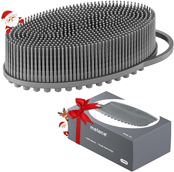 Metene Silicone Exfoliating Body Scrubber with Loop, Body Scrubber for Men and Women, Silicone Loofah for Shower, Soft Silicone for Shower and Bath Skincare Routine (Gray)