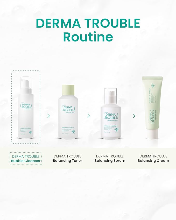 - FUSIDERM-T - Derma Trouble Bubble Cleanser contains 10,000ppm of the powerful and exclusive ingredient Fusiderm-T, a patented formulation developed by Dongwha Pharmaceutical that has soothing, moisturizing, gentle exfoliation, and excess sebum controlling effects to provide a one-step solution to comedonal acne.