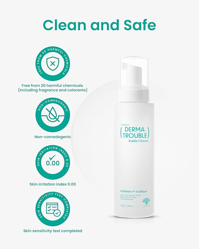 - FUSIDYNE DERMA TROUBLE BUBBLE CLEANSER (155ml/5.46fl oz) effectively cares for clogged pores, excess sebum, and trapped impurities with mild microbubbles, while soothing sensitive skin.