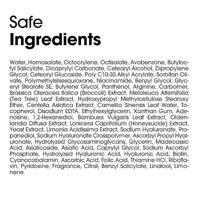 - 10 VITAMINS HYAL SUNSCREEN : No eye irritation and lightweight sunscreen that provides moisturizing and comfortable wear, suitable for sensitive skin and without leaving a white cast. This mild SPF lotion effectively blocks powerful UV rays, protecting the skin from damage during outdoor activities. Additionally, this daily sunscreen has a hypoallergenic formula with soothing properties, making it safe for sensitive skin