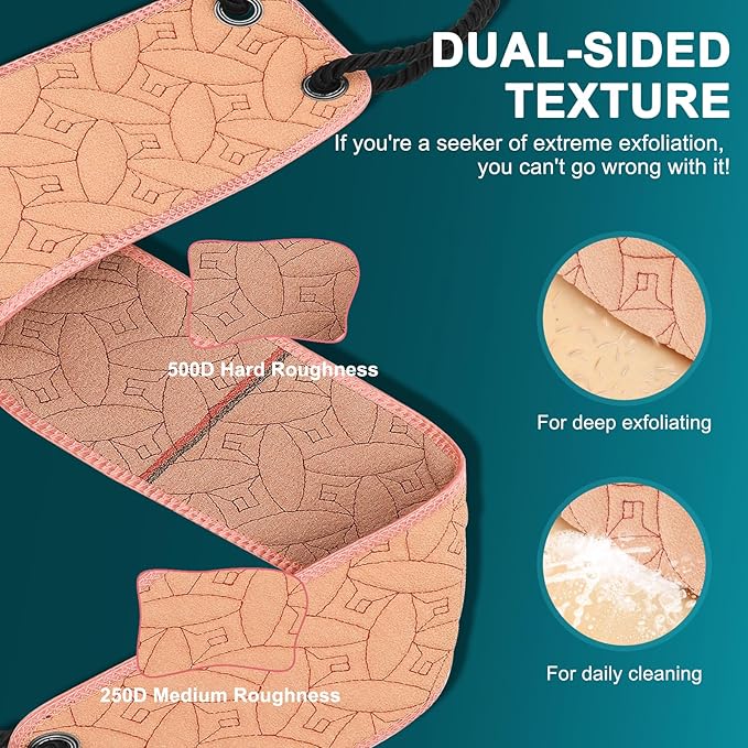 - 【Dual-Sided Texture】If you're a seeker of extreme exfoliation, you can't go wrong with it! Yes, there are two degrees of roughness! Dual-sided concave and convex textured fabric is designed for the back skin for all your bathing needs.