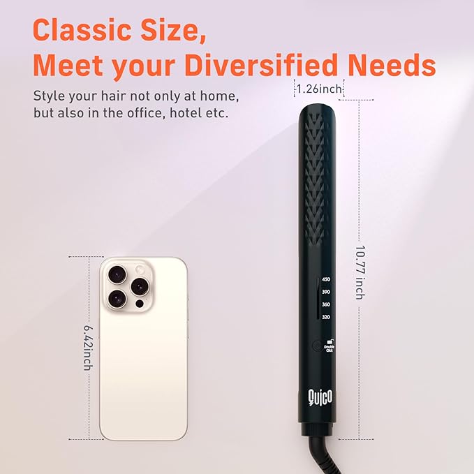 - π[Note on Size & Travel] The flat iron measures 10.77" (L) x 1.26" (W). Please check the size before purchasing to ensure it fits your travel or storage needs.