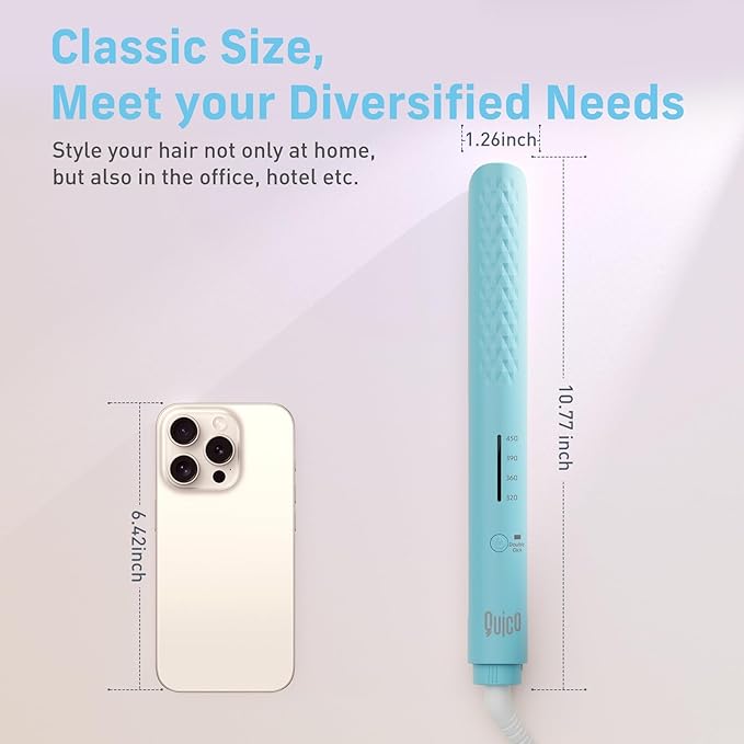 - ✨[Temperature Memory, Auto Shut-Off & Ideal Gift] Our straightening iron simplifies your routine. For every next use, the temperature will automatically heat up to the exact temperature you used last time, saving time on setting to your desired hairstyle. Safety is guaranteed with auto shut-off after 60 minutes without any operation. This is an ideal gift for any occasion, it comes with a one-year warranty. Enjoy effortless styling with Quico Hair Iron Straightener.