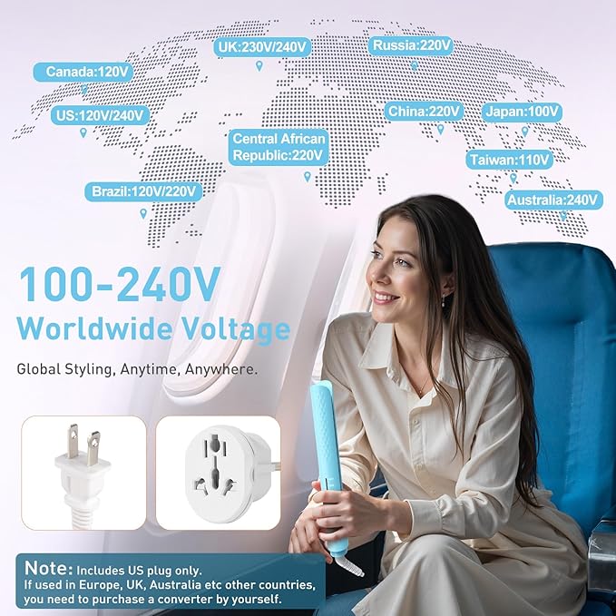 - 💝[Note for International Use] This hair straightener supports dual voltage (110–240V) for worldwide use, but it comes with a US plug. If you're using it in Europe or other regions, please use a suitable plug adapter.