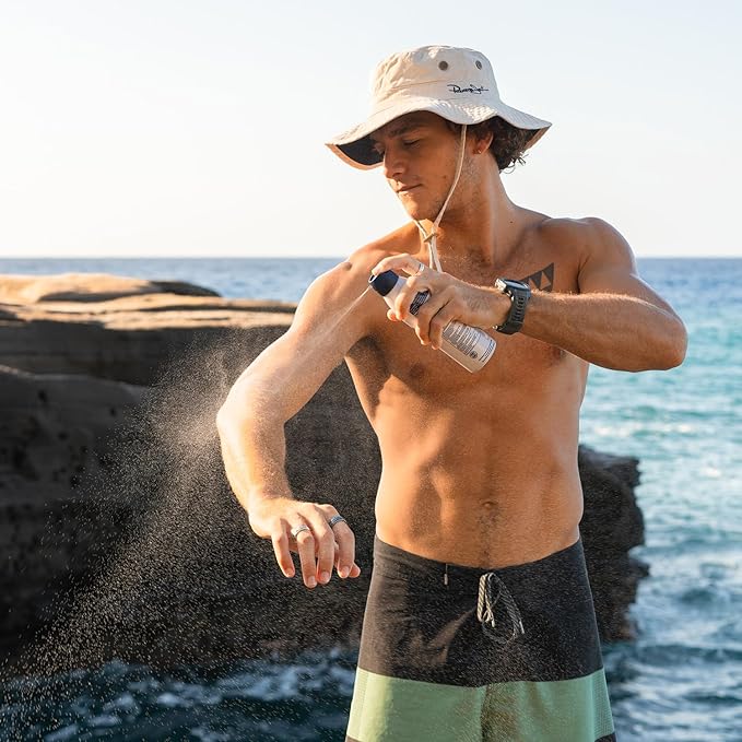 - 5.5 OZ (155 g) easy-to-grip consumer-friendly bottle with a twist open & closing spray dispensing cap. Use often and reapply after toweling dry, prolonged swimming, or excessive perspiration