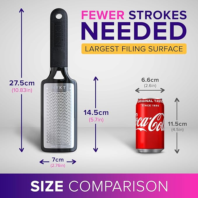 - REMOVES HARD SKIN EFFORTLESSLY - NYK1 Mega Foot File Hard Dead Skin Remover for feet, Foot Grater, Foot Scrubber used in professional foot care and shower foot scrub treatments. Eliminate thick, callused skin instantaneously. Much better than a foot peel.