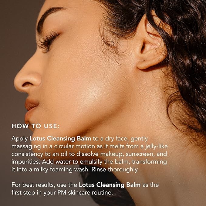 - Purifying Skin Care - Transform your complexion and start your double cleanse routine with this lotus oil cleansing balm. It's rich, jelly-like custard texture removes makeup, impurities and dirt, featuring mood enhancing notes of Indian Jasmine and Blue Tansy Oil. Suitable for all skin types, especially dry ones.