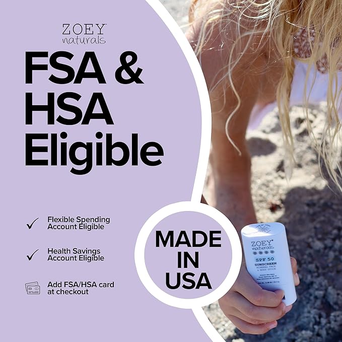 Zoey Naturals SPF 50 Mineral Sunscreen Stick for Babies & Kids - Safe Sunblock Moisturizer for Body & Face - with Rose Hips Oil, Zinc Oxide, Cruelty Free and Reef Safe, Made in USA