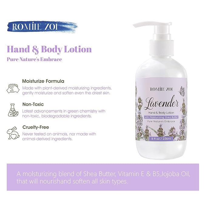 - All-Day Softness: Romiie Zoi lotion is combined with Vitamin E and B5,that helps maintain your skin's moisture barrier throughout the day.