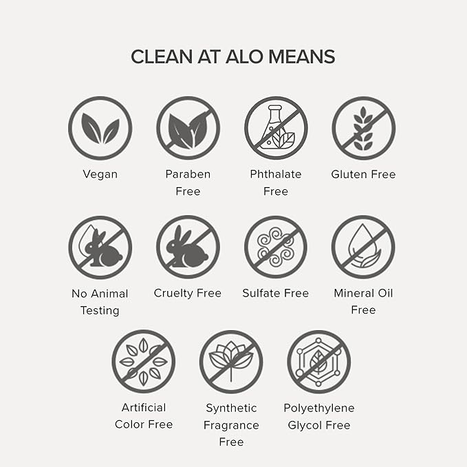 - CLEAN AT ALO: Our products are formulated without parabens, phthalates, sulfates, artificial dyes, aluminum, and silicones. All products are vegan, cruelty free, and made with recyclable packaging.