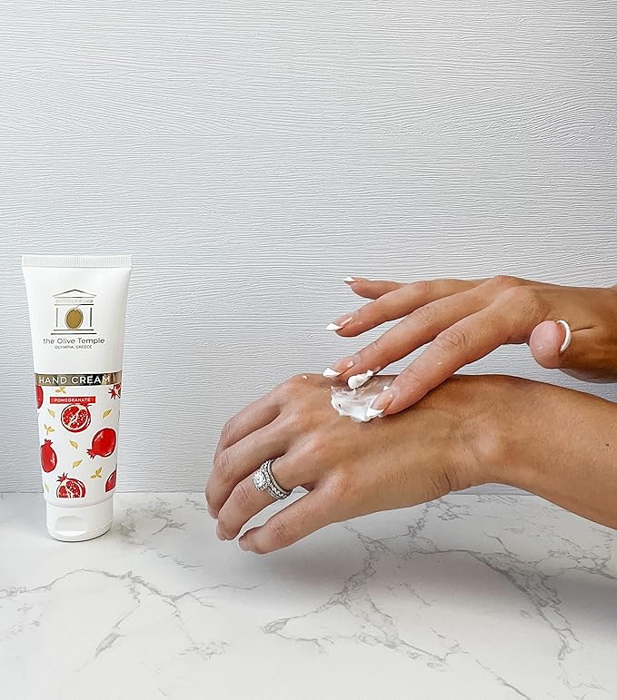 - NATURAL INGREDIENTS FOR HEALTHY SKIN: Our hand cream is enriched with the goodness of olive oil and pomegranate, two ancient Mediterranean treasures renowned for their skin-nourishing properties. Olive oil deeply hydrates and softens your skin, while pomegranate, rich in antioxidants, helps combat signs of aging, leaving your hands looking and feeling youthful.