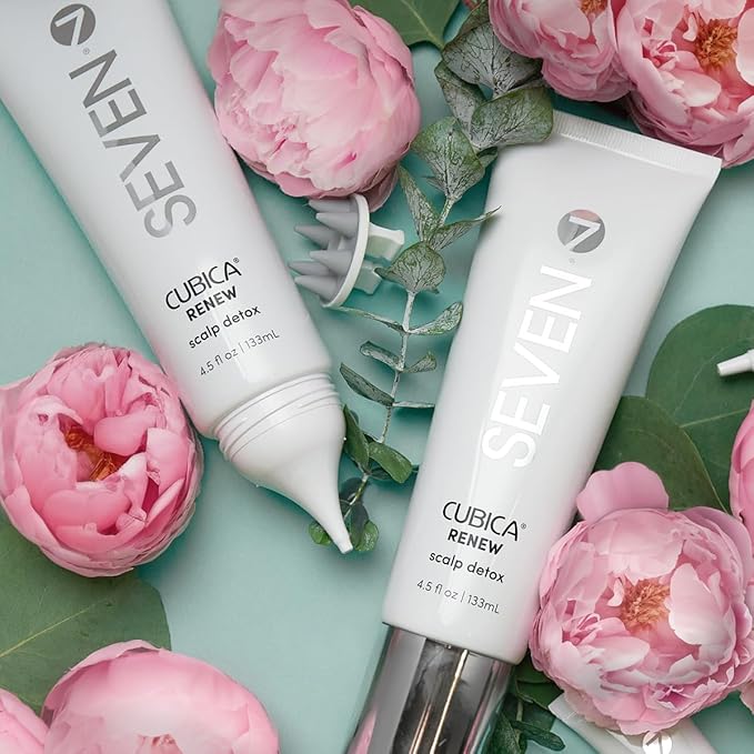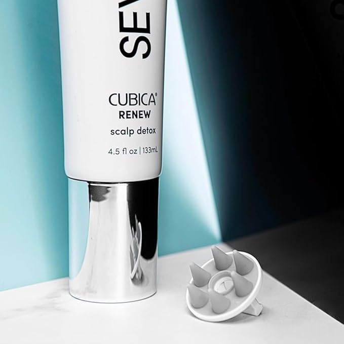 SEVEN Haircare CUBICA RENEW Scalp Detox Haircare Exfoliator Pre-Shampoo Deep Conditioning Hair Mask Treatment for Dry Damaged Hair with Eucalyptus, Charcoal, Kaolin & Papaya, Made in USA, 4.5 oz