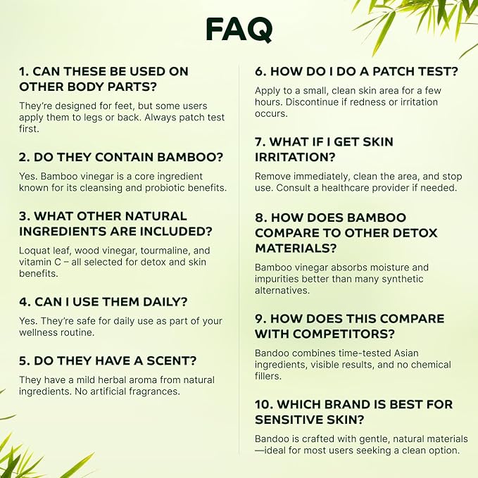 - NATURAL INGREDIENTS - Bandoo Foot Pads contain high-quality, natural ingredients to provide a gentle, non-invasive experience for your feet.