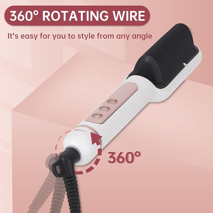 - Safe&Flexible: Hair Straightening brush with dual comb design avoids high temperature to burn our hair and skin. In addition, after 30 minutes, it will automatically shut off, keep you from fire risk. Hair straightener is only 0.84lb, lightweight and portable. The 360° rotating wire allows you flexibly brush hair without worrying about entanglement.