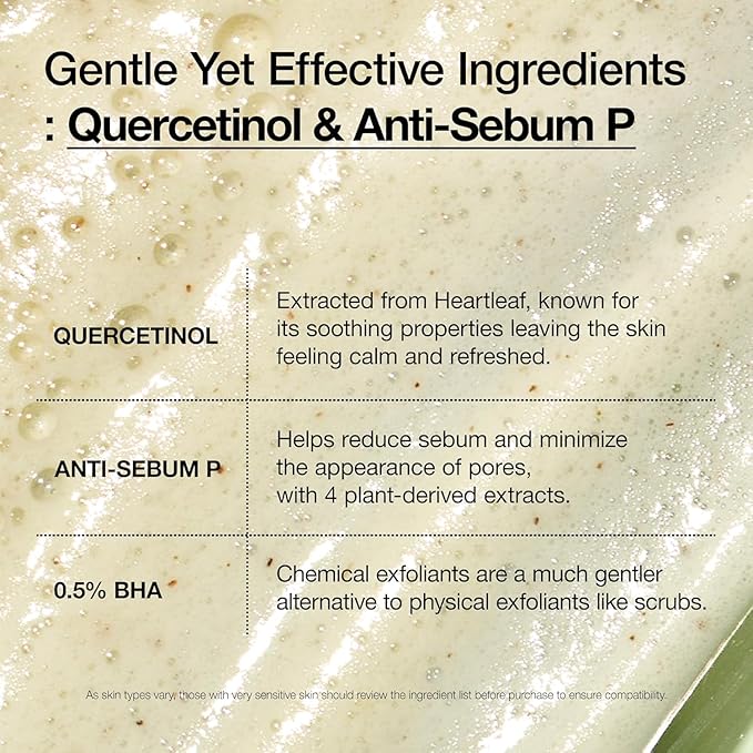 - [😀GENTLE EXFOLIATION😀]: Contains 3,000ppm Heartleaf powder to gently exfoliate dead skin cells and refresh skin surface by removing buildup and impurities.