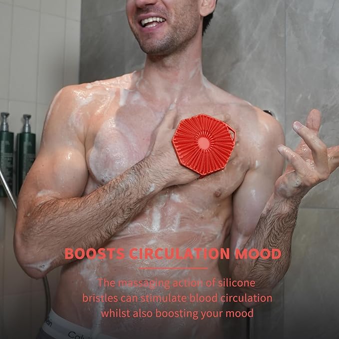 iTokGoK® Premium Silver-Infused 2-in-1 Silicone Body Scrubber, Double-Sided Design Body Brush Silicone Body Scrubber Exfoliating Body Brushes for All Skin for Showering, Lathers Well- Red