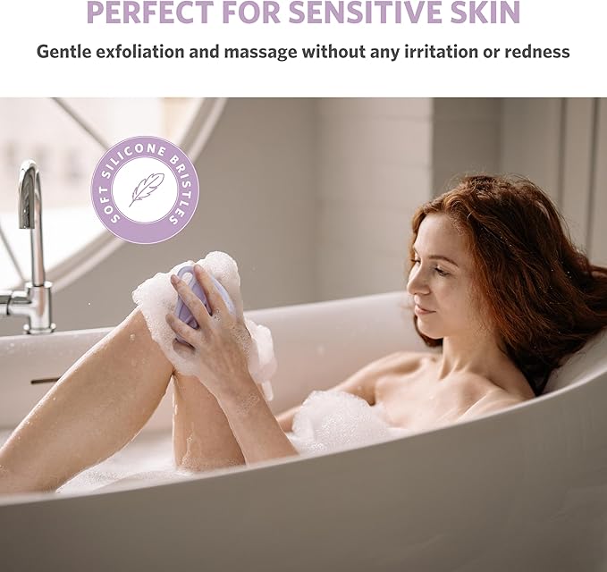 - Perfect for Sensitive Skin: The shower scrubber for body is made of soft food-grade silicone for gentle exfoliation and massage, which makes it perfect for those with sensitive skin or skin problems. It is gentle on the skin and doesn't cause any irritation or redness. Consistent use will leave your skin glowing
