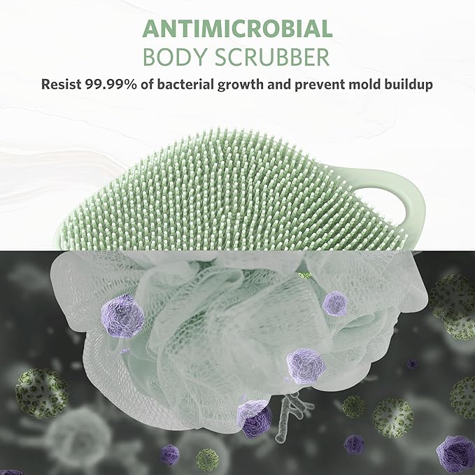 - Hygienic Silicone Body Scrubber: The body scrubber is made from 100% food-grade silicone and is infused with silver and zinc ions. It's more hygienic, comfortable and durable than loofahs or brushes made from other materials, ensuring a healthy and long-lasting cleaning experience