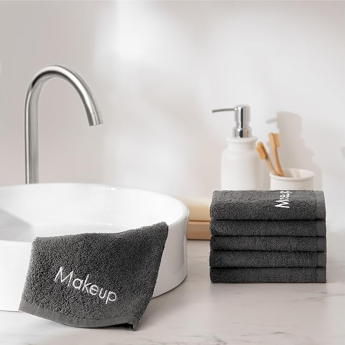 - PRETTY MAKEUP REMOVAL CLOTHS: Elevate your facial cleansing experience with Arkwright Home Cotton Grey Makeup Remover Washcloths beautifully decorated with embroidered Makeup. Designed for super-gentle skincare, these 13x13 inch cloths offer a gentle makeup removal experience.
