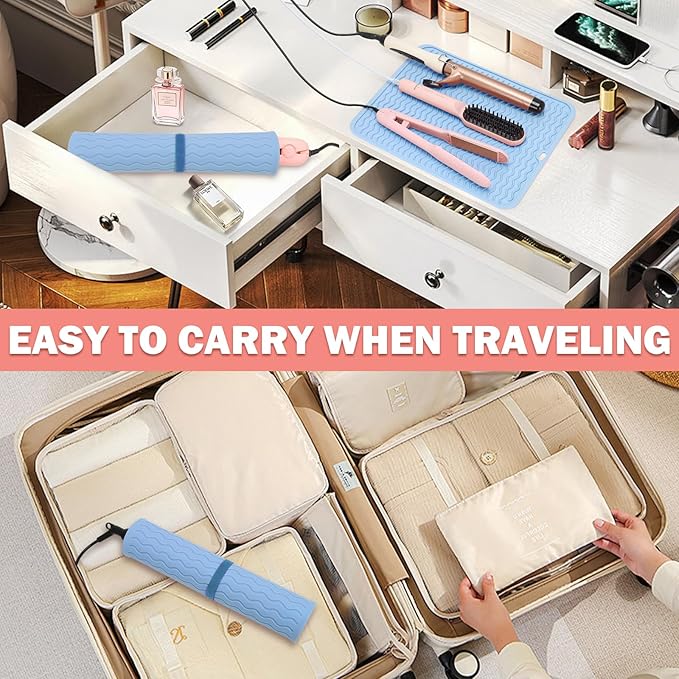 Oversize Silicone Heat Resistant Mat for Curling Irons, Hair Straighteners, Flat Irons and Hot Hair Styling Tools, Portable Wrap Pad Cover for Vanity, Travel, Salon(14.2" x 11.0")