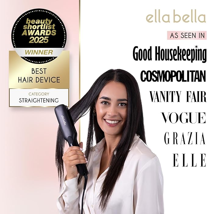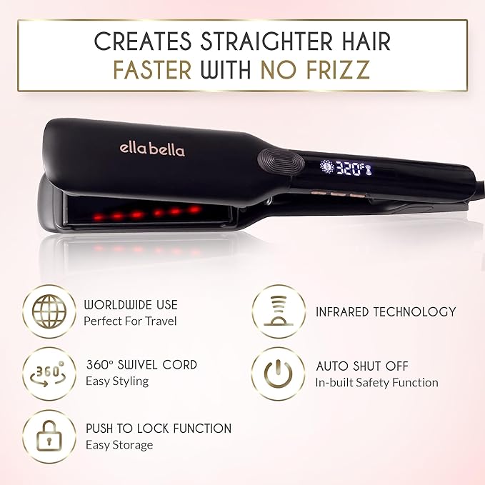 ELLA BELLA® Titanium Flat Iron Hair Straightener (with Infrared) • Professional Straightening Iron • Digital Display to Accurately Control Temperature • As Featured in Good Housekeeping